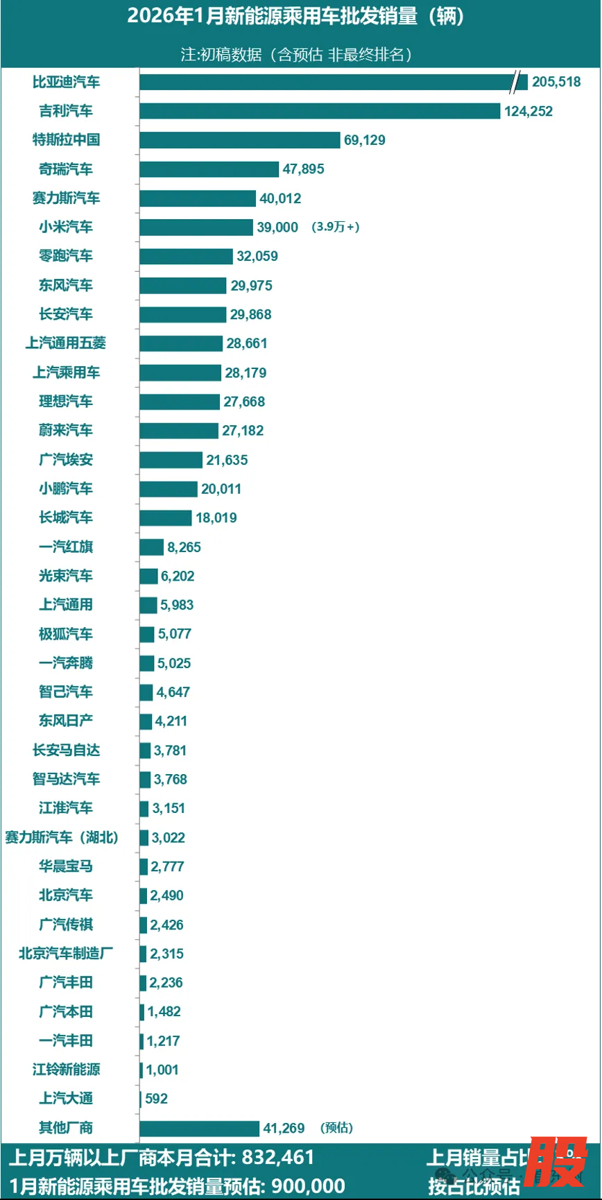 IT之家 2 月 4 日消息,乘联分会崔东树发文称,根据乘联分会最新数据,全国乘用车市场 2025 年 12 月新能源批发销量万辆以上厂商,占总体新能源乘用车当月批发销量的 93%,2026 年 1 月全国乘用车厂商新能源批发预估 90 万辆,同比增长 1%。
