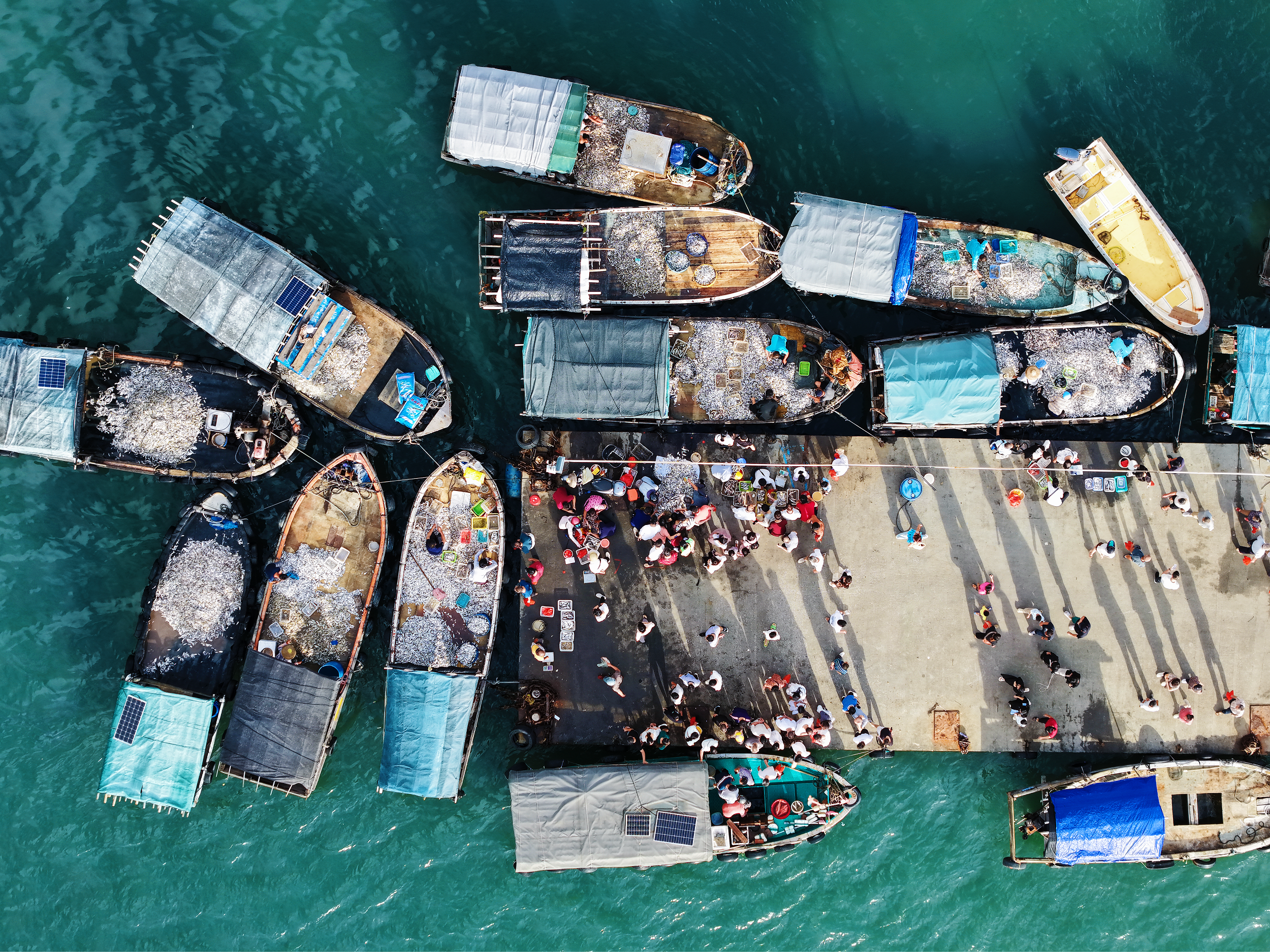 开渔季,湛江渔人码头热闹非凡,鱼获丰富了人们的餐桌。(蓝东旭 摄)